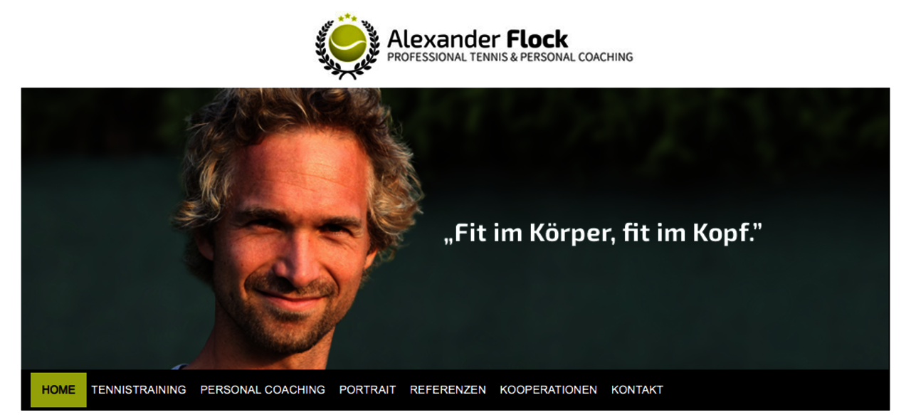 Von amr webdesign wurde der Entwurf von Dietmar Putscher 1 zu 1 umgesetzt und mit einem Typo3 Responsive Design realisiert. Auf seiner Internetseite bietet Alexander Flock nun Nachrichten, professionelles Tennis Coaching und Personal Coaching an. Unter dem Motto ” Fit im Körper,Fit im Kopf” hat er ein eigenes Coaching Programm entwickelt, mit dem er junge und ambitionierte Tennisschüler beim Start ins Profi Tennis aufbauen will.